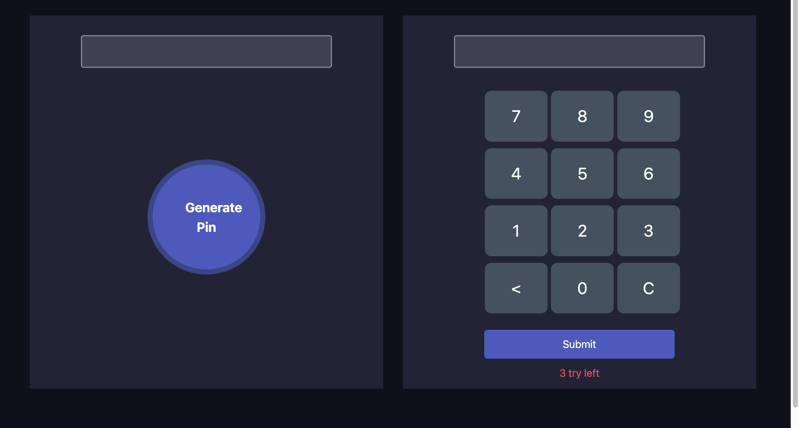 Simple pin matching app build with javascript. User can generate a random pin with a button and match the pin by giving input